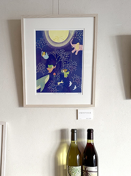 「みよこの絵をみながら、みよこ画エチケットのワインを楽しめるなんて、最高!!!」と酒呑み仲間に喜んでいただきました。わたしも最高です!しあわせ!